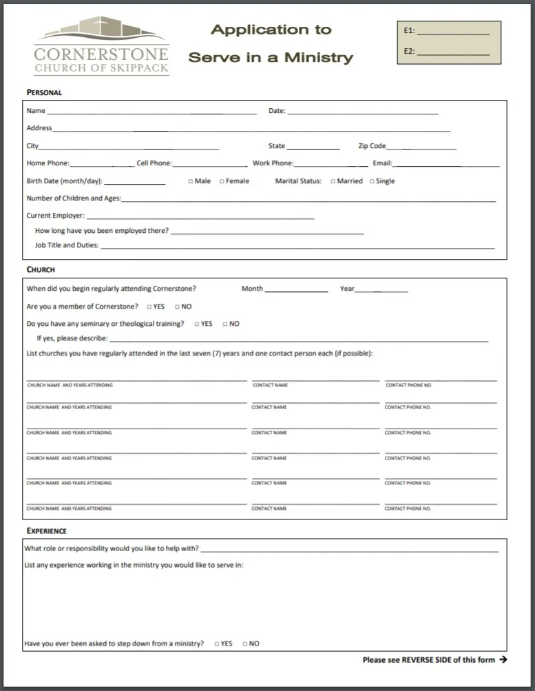 Application to Serve in a Ministry